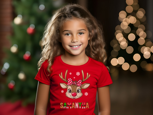 Personalized Kids' Christmas T-shirts with Reindeer and name